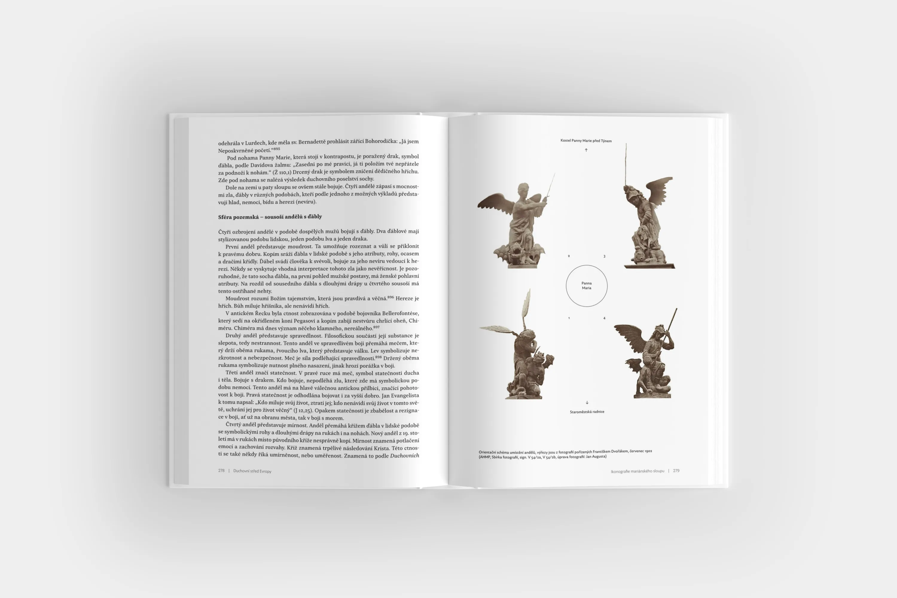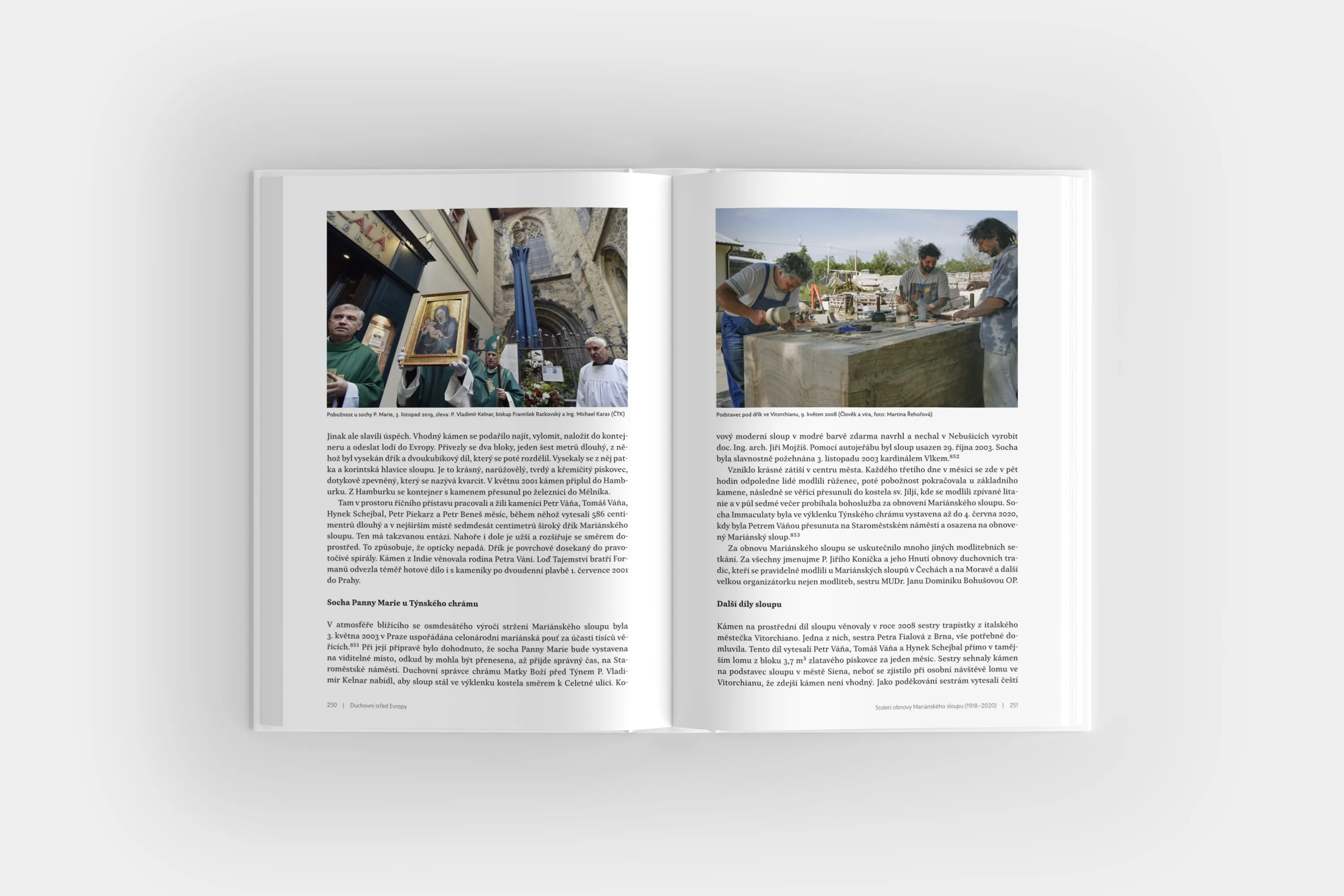 Hlavním tématem knihy jsou historické události spojené se vznikem, existencí, stržením a obnovením Mariánského sloupu na Staroměstském náměstí v Praze. Postaven byl císařem Ferdinandem III. jako poděkování Panně Marii za obranu Prahy před Švédy v roce 1648 a ukončení prvního celoevropského válečného konfliktu. Autoři nevnímají tuto barokní památku pouze jako mimořádné umělecké a urbanistické dílo Jana Jiřího Bendla, ale také jako významný kulturní symbol. Jeho prostřednictvím se dotýkají řady dalších témat, mezi něž patří dobové spory o smysl a výklad českých dějin, role barokního umění, vztah státu a církve, husitský a bělohorský mýtus či náboženské spory. Autoři rovněž osvětlují často tradované mýty, které souvisejí s Mariánským sloupem. Za významnou považují také otázku jeho ikonografie. Součástí knihy je rozsáhlá obrazová příloha, která obsahuje řadu doposud nepublikovaných fotografií. Autoři vycházeli vedle dostupné literatury z mnoha archivních pramenů včetně pozůstalosti prvního předsedy Společnosti pro obnovu mariánského sloupu na Staroměstském náměstí architekta Pavla Naumana. Knihu graficky upravil František Štorm. Předmluvu napsal Dominik kardinál Duka, arcibiskup pražský a primas český. Doslov napsal prorektor Univerzity Karlovy prof. Jan Royt.